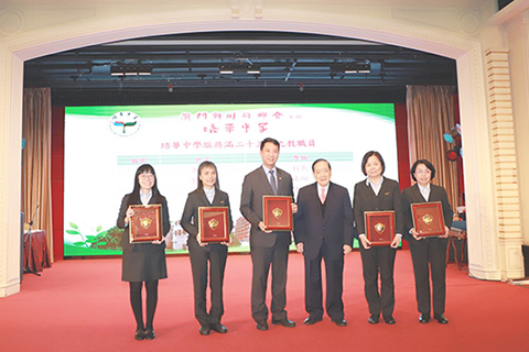 接著校董會許世元主席、鄺達財名譽主席、唐志堅校監、劉藝良副主席、邱金海副主席向為校服務滿五年、十年、十五年、二十年及廿五年的教職員工頒發服務獎,同時亦頒發在培華中學建校二十五周年校慶系列活動啟動禮中表現突出的教職員工。
