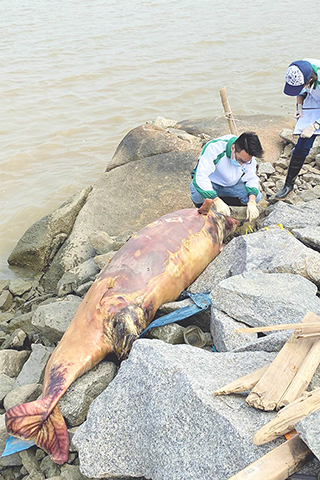 路環九澳三聖廟外石灘上 發現中華白海豚屍體