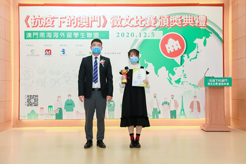 【特訊】由澳門南海海外留學生聯盟主辦的《抗疫下的澳門》徵文比賽於本月五日舉行了頒獎典禮,是次活動冀讓澳門學生及青年透過寫作記錄及抒發自己在抗疫期間的感受和經歷。三名澳旅院學生在大學組中獲得金、銅及優異獎,金獎學生是就讀酒店及旅遊管理碩士課程的郭琬婷、銅獎學生是就讀酒店管理本科課程的余晨露,以及優異獎學生為就讀旅遊企業管理本科課程的彭千瀅。