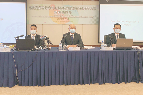 高等教育局昨日上午十時三十分假該局舉行發佈會,介紹《澳門高等教育中長期發展綱要(二0二一—二0三0)》內容,高教局代局長曾冠雄表示,為更科學地制定未來本澳高等教育發展政策,高等教育局於二零一五年啟動有關對本澳高等教育中長期發展的前期研究工作,並完成了《澳門高等教育中長期發展規劃研究報告》,隨著新的《高等教育制度》法律及相關配套法規於二零一八年八月八日正式生效後,高等教育委員會於二零一九年設立了相關工作小組,專門跟進有關規劃高等教育中長期發展的相關工作。
