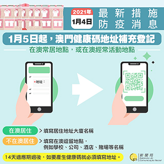 【專訪】澳門健康碼系統新增補充登記地址功能今日(五日)上午十一時起推出,設有十四天適應期,當局呼籲市民毋須急於登記。