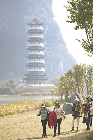 廣西柳州昔日水塘變身生態公園 2021-01-05 03:30:00 ◎ 一月四日,市民在廣西柳州市柳江區岜公塘濕地公園裡遊玩。近日,廣西柳州市柳江區岜公塘濕地公園景觀亮化工程調試完畢,昔日水塘經過改造提升後,成為市民休閒的好去處。柳江區岜公塘濕地公園佔地面積一千六百餘畝,是柳州市重大項目之一,是集濕地、觀光、賞花、遊玩為一體的生態型主題公園。(新華社)