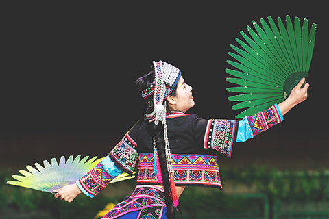 ◎ 本月五日,紅河州元陽縣哈尼梯田文化傳習館的演員在表演《哈尼古歌》。近年來,雲南紅河哈尼族彝族自治州以《哈尼四季生產調》等國家級非物質文化遺產為素材,創作編排出歌舞劇目《哈尼古歌》進行常態化展演,在弘揚傳統民族文化的同時,為各地遊客呈現了一場視聽盛宴。