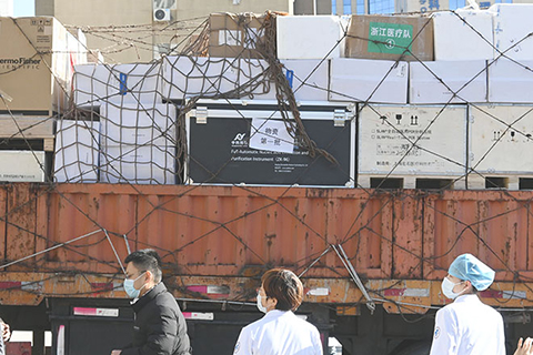 ◎ 一月八日,河北石家莊,浙江省支援河北省新冠病毒核酸檢測醫療隊及援助物資抵達河北醫科大學第一醫院。據了解,該醫療隊一百零三名隊員,分別來自浙江省疾病預防控制中心、六家省級醫院以及杭州、寧波、嘉興、湖州、紹興等五個地市,是一支具備豐富經驗的專業技術隊伍。該醫療隊領隊姚強表示,醫療隊將實行二十四小時三班倒,不間斷地做核酸檢測,協助河北的疫情防控。此次醫療隊還攜帶了一百多台設備,二十五萬人份的醫療試劑。(中新社)