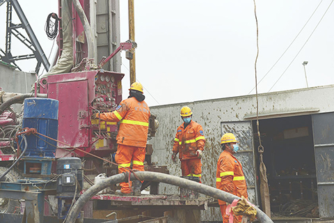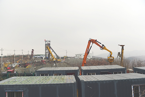 ◎ 截至一月十五日十四時,距離山東棲霞礦難發生已過去一百二十小時,為了二十二名被困礦工的生命,救援依舊在爭分奪秒地進行中。五天前,這座金礦發生爆炸事故,井下工人至今失聯。走近救援現場,多台鑽井機高高矗立,鑽頭不斷向地下鑽探。從地面向下打鑽,是為了給被困人員打通另一條生命通道,用於通風放氣、傳送給養。爆炸發生於笏山金礦井下「一中段」(離井口二百四十米),而二十二名礦工分別位於「六中段」(離井口六百九十八米)和「五中段」(離井口六百四十八米)。目前,共有六個鑽孔同時進行施救。(中新社)