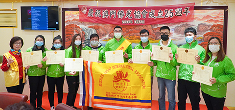 鄧月明會長致詞表示,是日喜事連連,慶祝協會25周年同賀團圓的同時,亦欣見佛光青年團新任幹部宣誓授證,這班朝氣蓬勃的年輕人,承擔傳承人間佛教的使命,期盼在未來老中青三代佛光人集體創作,發揚星雲大師提倡「人生三百歲」的精神,攜手書寫人間佛教新頁。