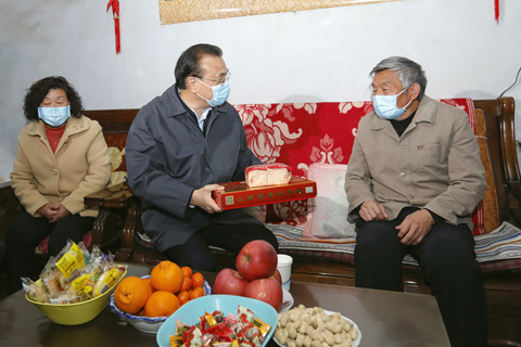 下午,李克強來到鹽湖區聖惠片區棚戶區居民孟樹平家中,詢問他們生活有甚麼不便。孟樹平說,這裡上下水不暢,下雨天雨水會倒灌,冬天沒有暖氣,迫切希望改造。地方負責人匯報了他們正在引入市場力量加快改造,李克強予以肯定,叮囑說,要順應群眾期盼抓緊開工,國家對棚戶區和老舊小區改造會繼續予以支持。出門前,李克強把一份自己從集市上選購的年貨送到孟樹平手中,祝他家早日搬進新樓房,把「老日子」過成「新日子」,過上「好日子」。