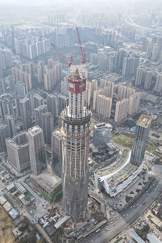 成都在建的「第一高樓」鋼結構已達三百五十米 2021-02-19 03:30:00 ◎ 二月十八日,四川成都,航拍正在建設的「蜀峰468」高樓。當日,在建的成都「第一高樓」──「蜀峰468」高樓鋼結構高度已達到三百五十米。該高樓建築設計高度四百六十八米,共一百零一層。(中新社)