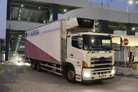 【中新社香港二月十九日電】(記者曾平)二月十九日下午五時三十分左右,供港首批科興新冠疫苗由香港國泰航空公司CX391航班運抵香港國際機場。運載疫苗的飛機降落後,七個裝載疫苗的貨櫃箱隨即被卸載下來。