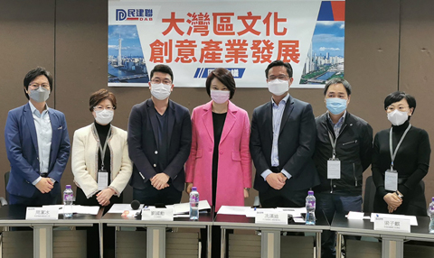 ◎二月十九日,香港民建聯舉辦「粵港澳大灣區文化創意產業發展」圓桌會議,邀請了五位嘉賓就議題發表寶貴意見。圖為民建聯主席李慧琼(中)和嘉賓分別是中手游創始人兼副董事長冼漢迪、香港話劇團行政總監梁子麒、粵港澳大灣區文創科技聯盟執行主席李嘉俊、香港粵劇曲藝協會主席周潔冰,和邵氏影城影視營運經理楊勉恒。(香港中通社)