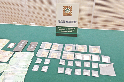 案情指,司警一星期前接獲的線報,指一外僱在入住的路氹一酒店房販毒,經分析鎖定目標,隨即部署。前(二十四)晚發現涉案的趙某離開酒店,懷疑出貨,跟蹤後在氹仔市區將其人拘捕,在他身上起出二十二點一八克「K仔」及十二點八克「開心粉」,毒品市值三萬五千澳門元。
