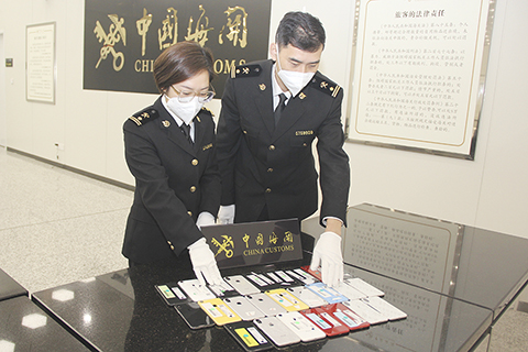 【記者陳藝珠海報道】二月二十六日,拱北海關所屬橫琴海關在橫琴口岸查獲兩名旅客人身綁藏五十台手機進境情事。
