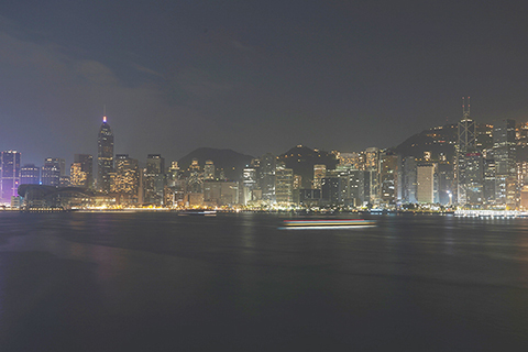 ◎ 三月二十七日晚八時三十分開始,響應世界自然基金會舉辦的「地球一小時」活動,香港維多利亞港兩岸的眾多摩天大廈紛紛關閉景光燈、LED廣告牌等。同時香港旅遊事務署宣佈當晚的「幻彩咏香江」燈光音樂匯演暫停。圖為關燈時的維港夜景。(中新社記者 張煒 攝)