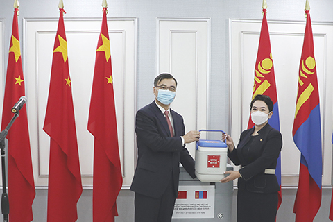 此前,由中國政府和中國人民解放軍援助的新冠疫苗2月22日運抵烏蘭巴托。
