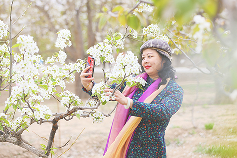 蘭州什川古梨園 2021-04-16 03:30:00 ◎ 四月十五日,遊客在被譽為「世界第一古梨園」的蘭州皋蘭縣什川古梨園內賞花拍照。什川古梨園種植歷史可追溯到明代嘉靖年間,園內最古老的梨樹有四百多歲,其中百年以上古梨樹九千四百二十三餘株。四月中旬,梨園進入盛花期,各地遊客紛紛前往踏青賞花。(中新社)