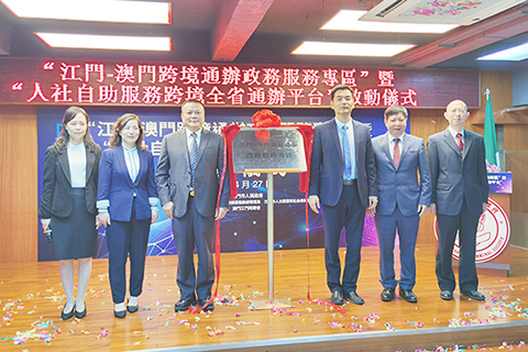 【中新社澳門四月二十七日電】(記者龍土有)四月二十七日,由廣東省江門市政府牽頭打造的「江門─澳門跨境通辦政務服務專區」,在澳門江門同鄉會正式揭牌啟用,並同步發佈「人社自助服務跨境全省通辦平台」。