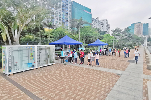為增加公眾對「樓宇安心用水計劃」的認識,引起住戶對樓宇水箱清潔和衛生的關注,局方正在本澳八個地點開展社區巡迴展覽,展示實景製作的巨型邋遢水箱和潔淨水箱,展期到五月底;剛完成水箱展出的地點包括塔石廣場、祐漢街市公園、石排灣社區綜合大樓和水塘,而昨起展出巡迴至宋玉生廣場及青洲坊蓮花廣場。展出期間亦會逢周六、日,在指定水箱展覽點擺放兩個攤位遊戲,以及派出專人向市民講解及介紹「樓宇安心用水計劃」。