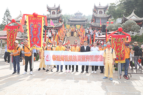 【專訪】為慶祝農曆三月廿三媽祖娘娘寶誕及推廣澳門媽祖文化旅遊節,澳門中華媽祖基金會護送澳門天后宮媽祖金身回湄洲媽祖祖廟進香團活動於昨日上午圓滿結束,其後應福建圍頭灣天后宮邀請,到被譽為「海峽第一村」的圍頭村進行遶境,澳門天后宮更與圍頭灣天后宮結為「姊妹宮」,每年媽祖寶誕回祖廟進香均會駐駕圍頭灣天后宮,以促進閩澳兩地媽祖信俗文化交流。團長陳明確表示,相信隨著兩宮日後的密切交往,能促進閩澳兩地媽祖信俗文化的交流與宣傳澳門媽祖文化旅遊節。
