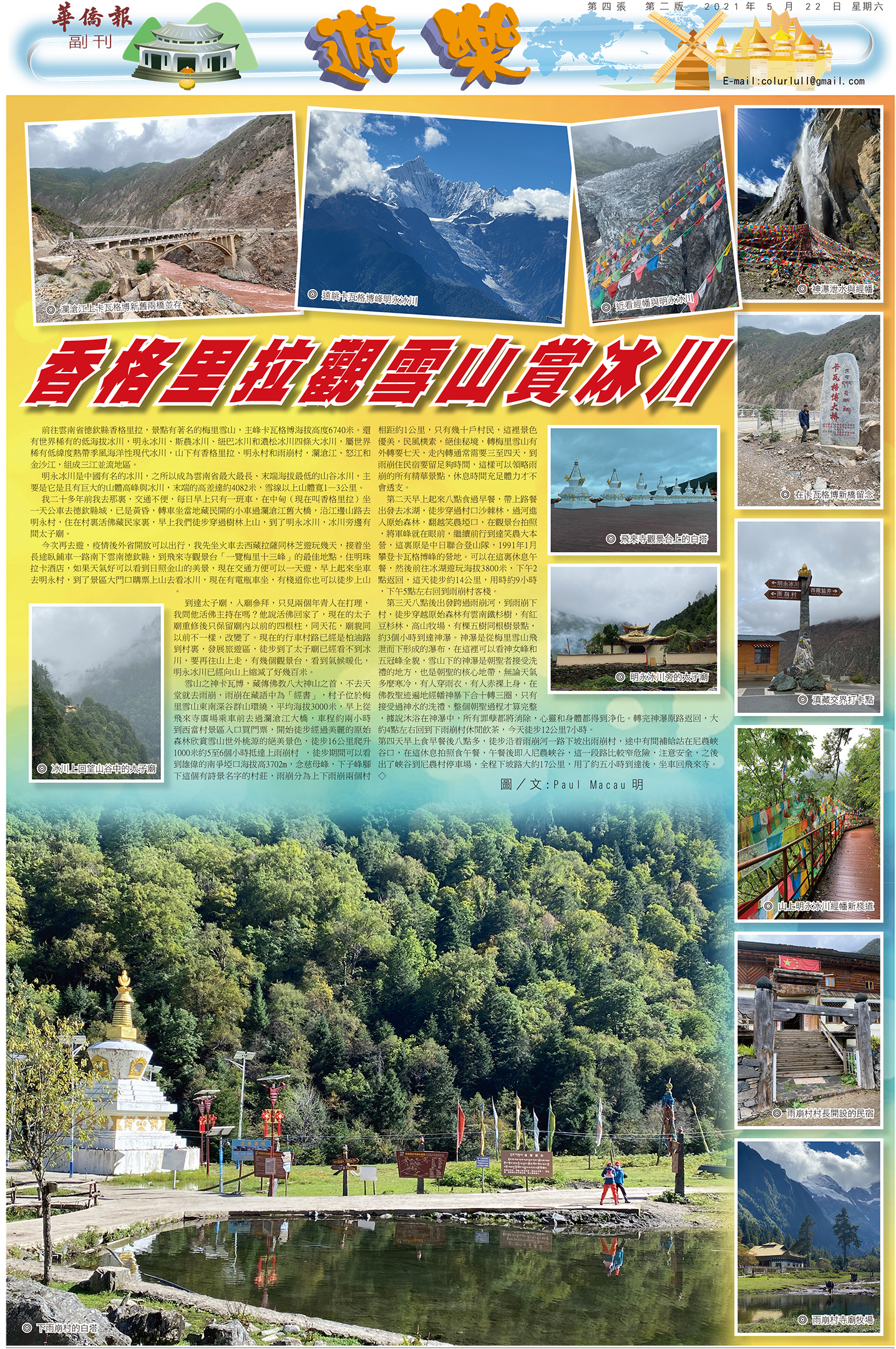 第四天早上食早餐後八點多,徒步沿着雨崩河一路下坡岀雨崩村,途中有間補給站在尼農峽谷口,在這休息拍照食午餐,午餐後即入尼農峽谷,這一段路比較窄危險,注意安全,之後出了峽谷到尼農村停車場,全程下坡路大約17公里,用了約五小時到達後,坐車回飛來寺。◇ 圖/文:Paul Macau 明