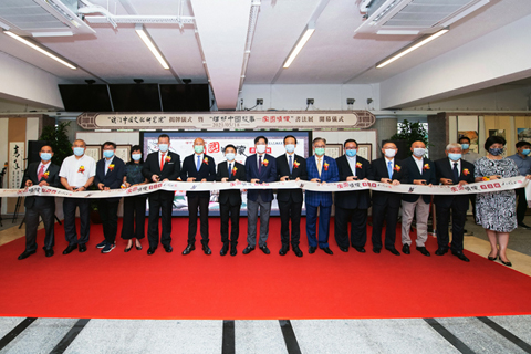 由澳門城市大學主辦的「講好中國故事──家國情懷書法展」昨(十八)日上午在城市大學本部大豐樓舉行,各有關方面人士逾百人出席,其中的主禮者包括:中聯辦教育與青年工作部副部長洪波;澳門教育及青年發展局副局長丁少雄;澳門城大基金會副主席劉藝良;城市大學校董會主席陳明金、副主席吳在權,城大校長劉駿;澳門天主教學校聯會會長周伯輝、中華教育會副會長何少金;澳門頤園書畫會會長崔世平、美術家協會主席黎鷹、美術協會會長陸曦;澳門書法院院長歐耀南;廣東省書法家協會副主席蘇鑑良;澳門華夏文化藝術學會會長關權昌、女子書法畫篆刻家協會主席洪珊珊等。