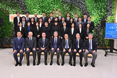 來自房屋局的蕭裕林代表培訓班全體學員發言,他表示各位學員帶著各自在工作中發現的問題而來,經過三個月的培訓,不僅掌握了四個模塊的專題性課程內容,而且就部門職責、面對的挑戰及工作優化方向進行了討論和思索。學員們一方面深入了解了新時代新形勢下的國家發展戰略,更加全面準確地認知特別行政區的憲制秩序,加深了對國家總體安全觀的認識,進一步知悉特區如何發揮「一國兩制」優勢和立足於「一中心」、「一平台」、「一基地」定位,主動對接國家「十四五」規劃、積極參與粵港澳大灣區建設的重要任務;另一方面,學員們亦分析和了解公共部門所面對的問題和挑戰,增進了對電子政務發展態勢及跨部門合作意義的認知,以及積極探討如何優化特區治理體系、提升特區政府部門服務水平、強化公務員團隊精神和凝聚力的問題。培訓班學員重返工作崗位後,將秉持愛國愛澳的核心理念,將今次受訓學習的所見、所聞、所學、所得等融入工作中,為落實澳門特區電子政務發展、加強跨部門溝通協作、參與特區行政改革、推動澳門融入國家發展大局和粵港澳大灣區建設,以及為「一國兩制」事業行穩致遠,作出應有的努力與貢獻。此外,還會繼續珍惜二十七名學員之間的跨部門同窗友誼,爭取為特區政府的跨部門政務合作添磚加瓦。