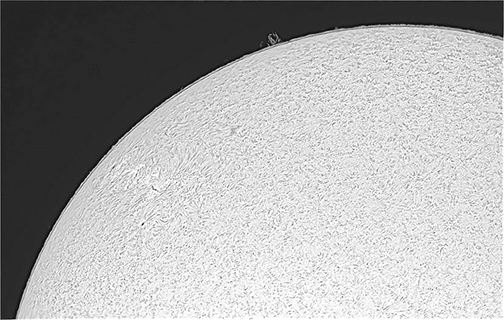 近日太陽的活動正在開始活躍起來,唯然光球層的活動仍然沒有令人驚喜的感覺,但色球層上的活動則相比較對頻繁,紀錄到標誌太陽火焰噴發的日珥,數目都和噴發的規模都不弱,且黑子和暗條都時有出現,亦不時有耀斑爆發。