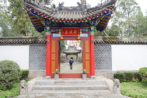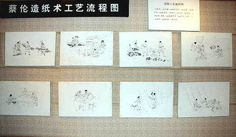 雖然快到中午,但景區內遊人甚少,顯得冷冷清清。進入園內,首先接納我們的是拜殿。殿內各種資料較為全面地展示了蔡倫的生平——蔡倫,字敬仲,東漢桂陽郡人,明帝時,曾任宮廷主管製造御用器物的尚方令。在任時,他常到鄉間作坊考察,他由蠶婦繅絲得到啟發,收集樹皮、廢麻、破布、舊魚網等原料,用銼、煮、浸、搗、抄等方法,經過反復試驗,終於造出植物纖維紙。和帝得奏,龍顏大悅,並大加讚賞,於是,「蔡侯紙」很快風行天下。後來,蔡倫捲入了錯綜複雜的宮廷鬥爭之中,59歲時死於他的封地,也就是現在的漢中市洋縣的龍亭鎮。