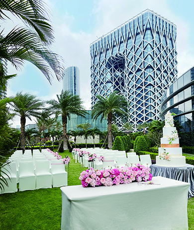 新人亦可額外以優惠價澳門幣26,999享用戶外花園浪漫儀式套餐(原價澳門幣33,999)。