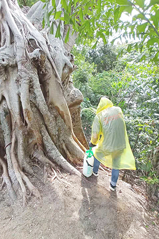 【特訊】市政署一直對本澳古樹進行巡查及管護,其中持續跟進的一株位於路環竹灣馬路假菩提古樹日漸衰弱,為安全起見,計劃於本月中下旬為古樹修剪枯枝。另一株位於龍環葡韻的假菩提樹因感染褐根病,經救治後樹幹基部及根部木材仍霉爛,證實已完全枯萎,亦將於上述期間移除。