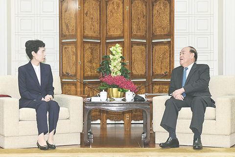 【特訊】行政長官賀一誠昨日在政府總部會見中國國際貿易促進委員會會長高燕,雙方就推動澳門會展業發展和進一步融入國家發展大局等議題交換意見。