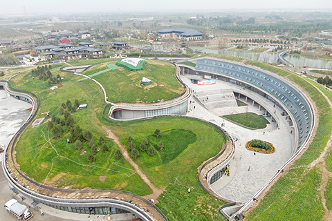 ◎ 六月二十七日,作為雄安新區「一淀、三帶、九片、多廊」的生態格局中「九片」之一的雄安郊野公園基本建成,這座總面積約二點六八萬畝,建成後將是目前中國最大的城市郊野公園,為未來之城渲染最美的生態底色。圖為六月二十六日,航拍雄安郊野公園雄安主場館。(無人機照片)(中新社記者韓冰攝)
