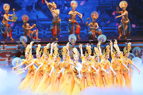 佘詩曼與陳煒「互睥」成亮點 周杰倫釋出浪漫新歌 首度曝光珍藏十年求婚影片 《Grand住享樂人生》今晚播映 歐瑞偉曾為張國榮做替身 《最親愛的陌生人》 《超級巴斯德》 美食節目《飯罪現場》 謝霆鋒港大開Talk 澳門中樂團菁英音樂會 《致敬百年》在蘭州舉行 2021-06-30 03:30:00 ◎ 六月二十八日晚,甘肅省慶祝中國共產黨成立一百周年文藝演出──音樂舞蹈史詩《致敬百年》在蘭州舉行。整場演出分為《雄關漫道》《人間正道》《復興大道》三個篇章,將音樂、舞蹈、戲曲、雜技、詩歌等多種藝術形式相結合,以全息多媒體技術與實景演出交相輝映,營造了澎湃、恢宏的場景。圖為演員演繹舞劇《絲路花雨》。