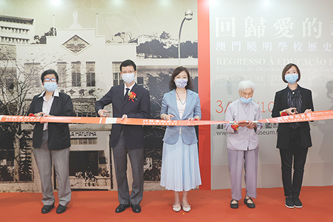 【特訊】文化局轄下澳門博物館舉辦「回歸愛的教育─澳門曉明學校歷史珍藏展」,於昨日下午六時三十分在澳門博物館大堂舉行開幕儀式,由文化局局長穆欣欣、中央人民政府駐澳門特別行政區聯絡辦公室宣傳文化部副部長殷汝濤、前曉明學校校長范桂芳修女、前曉明學校校友代表黃懿蓮及澳門博物館館長盧可茵主禮,一眾校友出席觀禮。