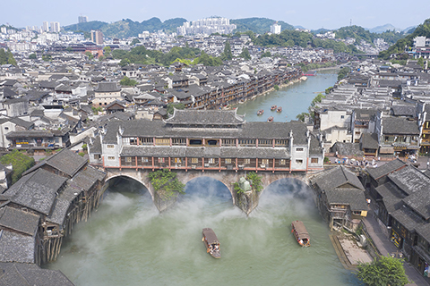 號召全社會傳承英烈精神汲取奮進力量清明祭英烈 習近平心中「最閃亮的坐標」 哈爾濱迎降雪氣象部門發佈暴雪藍色預警 內地清明鐵路客流迎高峰 4月4日料發送2120萬人次 移動電源安全使用年限 內地明年起強制標註 馬英九基金會否認撤換代理執行長 中國壓實外賣平台主體責任 六月前全面落實食品安全新規 中方回應世界數據組織落戶北京 李鴻忠在四川調研:深入學習宣傳 民族團結進步促進法 鳳凰古城人造江霧似仙境 2021-07-15 03:31:00 ◎ 七月十四日,遊人乘船在湖南鳳凰古城沱江上的人造江霧中航行如在畫中遊。據悉,江霧是由智能人造霧系統生成,不但增加了負離子清潔空氣增濕降塵,還可讓遊人在鳳凰古城隨時觀賞到霧景。(無人機照片)(中新社)