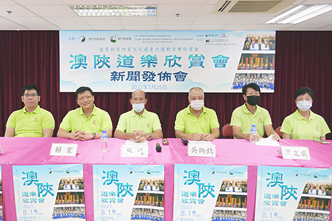 主辦單位表示,為慶祝澳門道教協會成立二十周年,獻禮之一的「澳陝道樂欣賞會」,將於八月一日下午三時於崗頂劇院舉辦。演出團體包括:澳門道樂團、陝西省西安市城隍廟道樂團、陝西省西安市城隍廟鼓樂團、濠江中學詠唱團、高美士中葡中學詠唱團等。門券由即日起每日下午二時半至五時半,於提督馬路四十一號祐適工業大廈二樓B澳門道樂團,免費派發。