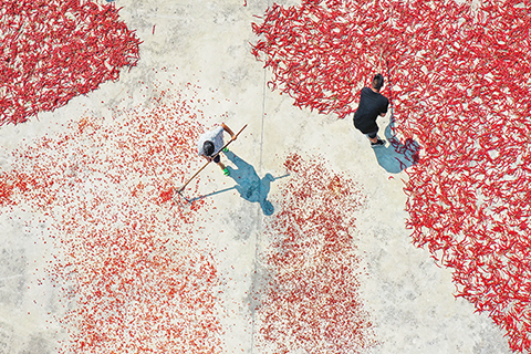 空中走廊鋼結構吊裝施工 圖文/紅柳 壯族綉球趕潮「三月三」 張廣權 美國友人種友誼樹紀念中美「乒乓外交」 周昕 陳林 (藝術評口)詩意的日子:評《日日是好日》 顢頇 貴州玉屏:辣椒豐收晾曬忙 2021-08-01 03:30:00 近日,貴州省銅仁市玉屏侗族自治縣田坪鎮的辣椒迎來豐收,當地農戶抓緊時間採摘、晾曬辣椒,房前屋後呈現一片紅紅火火的豐收景象。◇ (新華社)