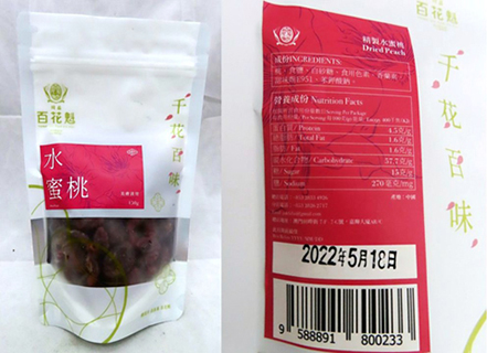 未能通過檢測的樣本為零售商同益百花魁的一款「精製水蜜桃」,其環己基氨基磺酸鹽(又名甜蜜素)含量為每公斤一萬五千九百毫克,超出本澳第十二/二0一八號行政法規《食品中甜味劑使用標準》的規定。涉事產品原產地為中國,每包淨含量一百五十克,該批次標示的最佳食用日期為二0二二年五月十八日前。市政署食品安全廳已即時採取跟進措施,聯繫涉事產品的零售商,勒令其停售問題批次產品,並追溯產品的來源及銷售流向。根據《食品安全法》規定,食品的生產經營須符合食品安全標準及使用原則,違法者最高可被判處五年徒刑或被科處最高六百日罰金;如屬行政違法行為,可被科處澳門幣五萬元至六十萬元的罰款。