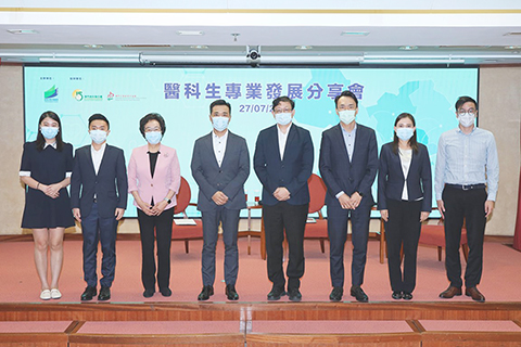 【特訊】為配合《澳門青年政策(二 0二一至二0三0)》政策方向與目標,加強人才培養,促進多元發展,助青年做好不同發展階段的生涯規劃,教育及青年發展局於七月二十七日舉辦了醫科生專業發展分享會。分享會以講座及交流形式,邀請了中山大學附屬第五醫院器官移植管理辦公室主任、粵港澳大灣區事務辦公室主任談雅莉進行分享,並與教青局局長老柏生及衛生局局長羅奕龍一同與現場的醫科生及從事醫療專業的青年交流。