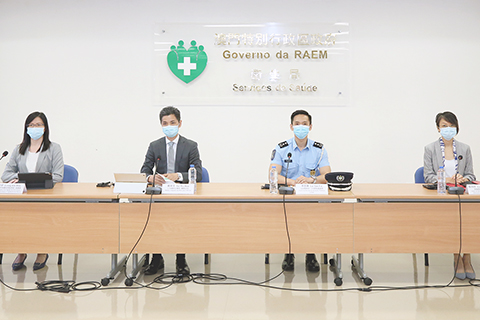 【特訊】新型冠狀病毒感染應變協調中心於昨日舉行記者會,仁伯爵綜合醫院醫務主任戴華浩醫生、旅遊局公共關係處藍同好處長、治安警察局公共關係處李德輝處長、疾病預防控制中心傳染病防制暨疾病監測部梁亦好協調員共同會見傳媒。