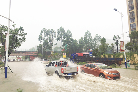 受颱風影響,廈門暴雨如注,島內外區域交通受到嚴重影響。包括環島路在內的島內市區城市道路部份路段,以及中心城區的著名商業街中山路,出現積水現象。環島路上,不少車輛趴在積水中,難以前行;中山路淹在水中,街道成了「溪流」。