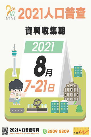 有關人口普查詳情,可瀏覽二0二一人口普查專頁(https://www.dsec.gov.mo/Censos2021),或致電人口普查熱線八八0九八八0九查詢。◇