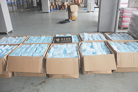 當天上午,現場關員根據檢查指令,在港珠澳大橋口岸出境貨車查驗場對一票申報出口澳門的傢俱進行查驗時,發現在貨物中夾藏有五萬個口罩。該批口罩採用零售密封包裝,均存在無品牌標識、無廠名廠址、無產品品質合格證明等問題。