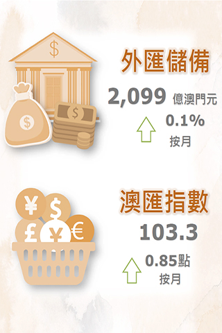 【特訊】澳門金融管理局昨(13)日公佈,2021年7月底澳門特別行政區的外匯儲備資產總額,初步統計為2,099億澳門元(262.2億美元),較2021年6月經修訂總額2,098億澳門元(262.3億美元),上升了0.1%。2021年7月底的外匯資產總額,約相當於2021年6月底澳門流通貨幣的11倍或廣義貨幣供應(M2)中屬於澳門元部份的86.2%。