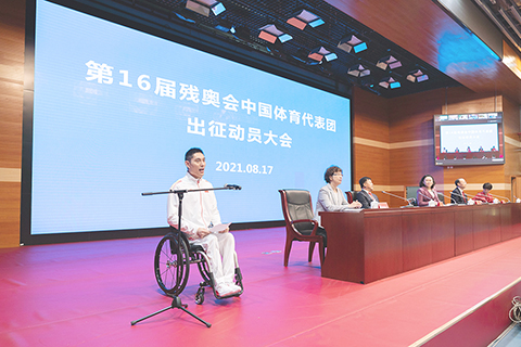 東京殘奧會中國體育代表團團長、中國殘聯主席張海迪在當日舉行的代表團出征動員大會上表示,本屆殘奧會在新冠肺炎疫情下舉行,更展示人類合作團結、戰勝一切困難的力量。中國代表團全體成員將全力以赴完成好東京殘奧會的參賽任務,實現安全參賽、展現精神、爭創佳績、傳遞友誼、運動成績和精神文明雙豐收的參賽目標。