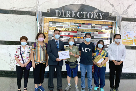 【專訪】五名台山新城市花園第八座昌勝閣業主在議員梁孫旭陪同下,昨日到廉政公署遞信,反映有公司將大堂出入口外的公共地方劃為泊車位,質疑其車位批則有否存在行政失當。