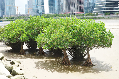 澳門「海岸綠翡翠」是怎樣煉成的?自2010年起民政總署(現改名為市政署)就有一個用紅樹林修復海岸的計劃。但在執行上並不是那麼容易,同事要在潮間帶的石縫中,艱難地種上紅樹的幼苗。相信這種「見縫插錄」是世界上難度最大的其中之一,海浪不斷淘走石縫中的泥土。大家請看這些紅樹照片,像不像漁村「吊腳棚」的兄弟「吊腳樹」?從此,每年的綠化週就加入了指定的種植紅樹活動,邀請學生團體、專家學者共同參與。目的是,加強教育好下一代保護生態的意識,透過學者的影響力,逐步将生態保護成為社會的公信力。澳門「海岸綠翡翠」背後的意義還有很多!◇