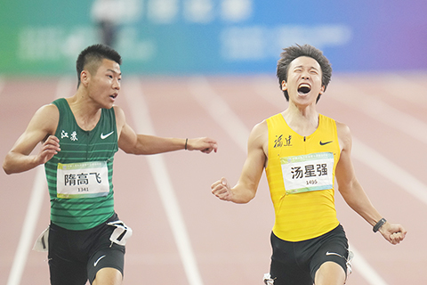 【香港中通社9月22日電】9月22日晚,中國第十四屆全運會男子200米決賽中,代表福建出場的湯星強最後20米逆轉全運會該項目紀錄保持者謝震業,以20.39秒最終奪冠。謝震業和盛超分列二三名。