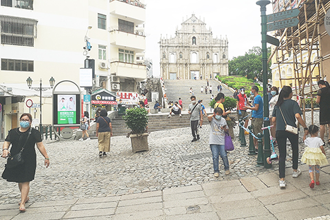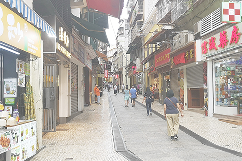 議事亭一帶雖然沒有遊客,但居民三三兩兩出來活動,享受安靜的大三巴,只是手信零售店門堪籮雀,部份更乾脆閉門休息幾天。超市和街市貨品充足,人流正常,經過一年多疫情的」反覆煎熬」,大家已對政府在食物供應上有充足信心,再沒有去年的囤貨舉動。