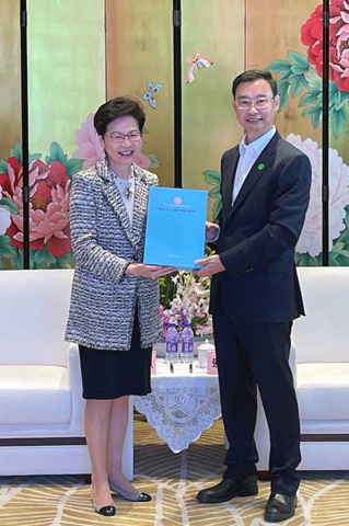 林鄭月娥說,穗港在金融、科技等領域各有所長,都是粵港澳大灣區的核心城市,可加強合作,優勢互補。