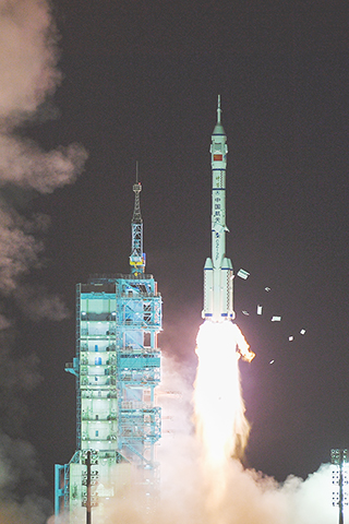神舟十三號成功發射 2021-10-16 03:30:00 ◎ 北京時間二零二一年十月十六日零時二十三分,搭載神舟十三號載人飛船的長征二號F遙十三運載火箭,在酒泉衛星發射中心按照預定時間精準點火發射,約五百八十二秒後,神舟十三號載人飛船與火箭成功分離,進入預定軌道,順利將翟志剛、王亞平、葉光富三名航天員送入太空,飛行乘組狀態良好,發射取得圓滿成功。(新華社記者 劉磊 攝)